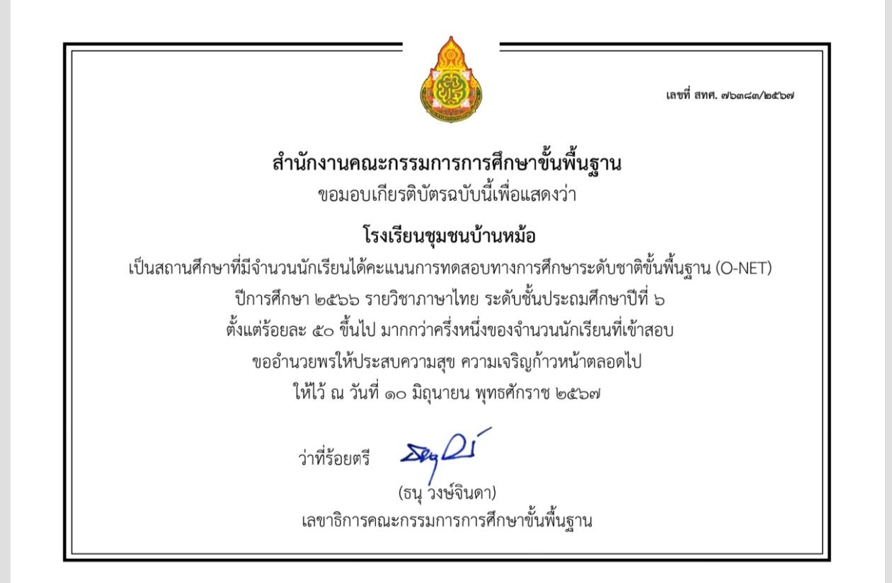 .. โรงเรียนชุมชนบ้านหม้อ ขอแสดงความยินดีกับ นักเรียนระดับชั้นประถมศึกษาปีที่ ๖ ที่ได้คะแนนการทดสอบทางการศึกษาระดับชาติขั้นพื้นฐาน (O-NET) ปีการศึกษา ๒๕๖๖ รายวิชาภาษาไทย ร้อยละ ๕๐ ขึ้นไป มากกว่าครึ่งหนึ่งของจำนวนนักเรียนที่เข้าสอบ ขอแสดงความยินดีด้วยนะคะ ????????