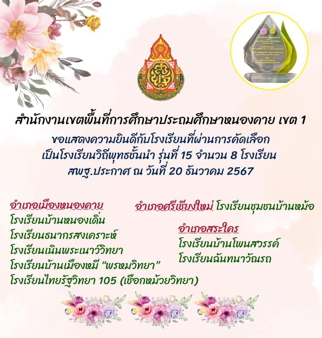 ได้ผ่านการยกระดับเป็นโรงเรียนวิถีพุทธชั้นนำ รุ่นที่ 15 ตามที่สำนักงานคณะกรรมการขั้นพื้นฐาน