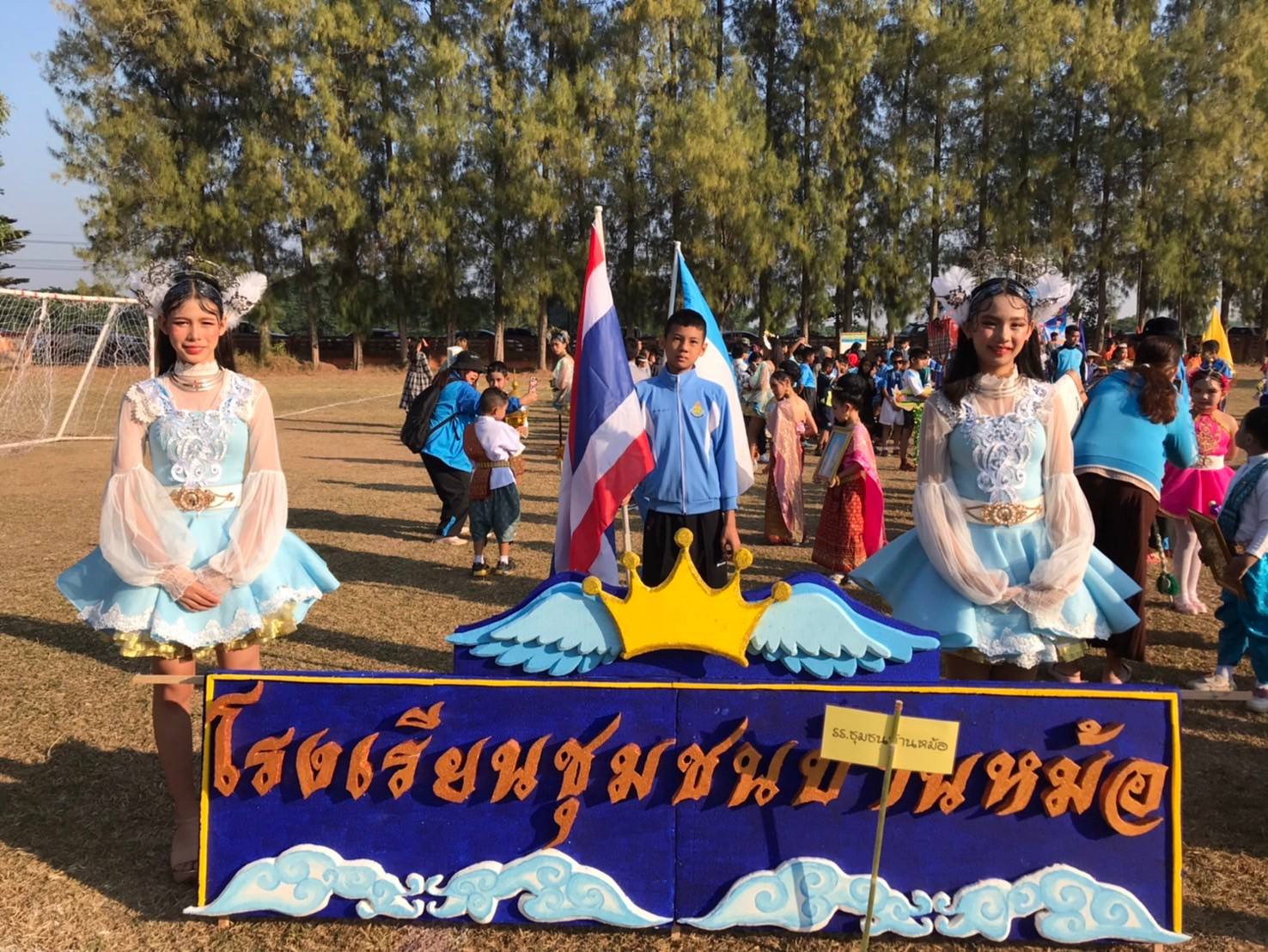 พร้อมด้วยคณะครู และนักเรียน ร่วมแข่งขันกีฬา และเดินขบวนพาเหรดในครั้งนี้ ณ สนามโรงเรียนชุมชนบ้านหม้อ