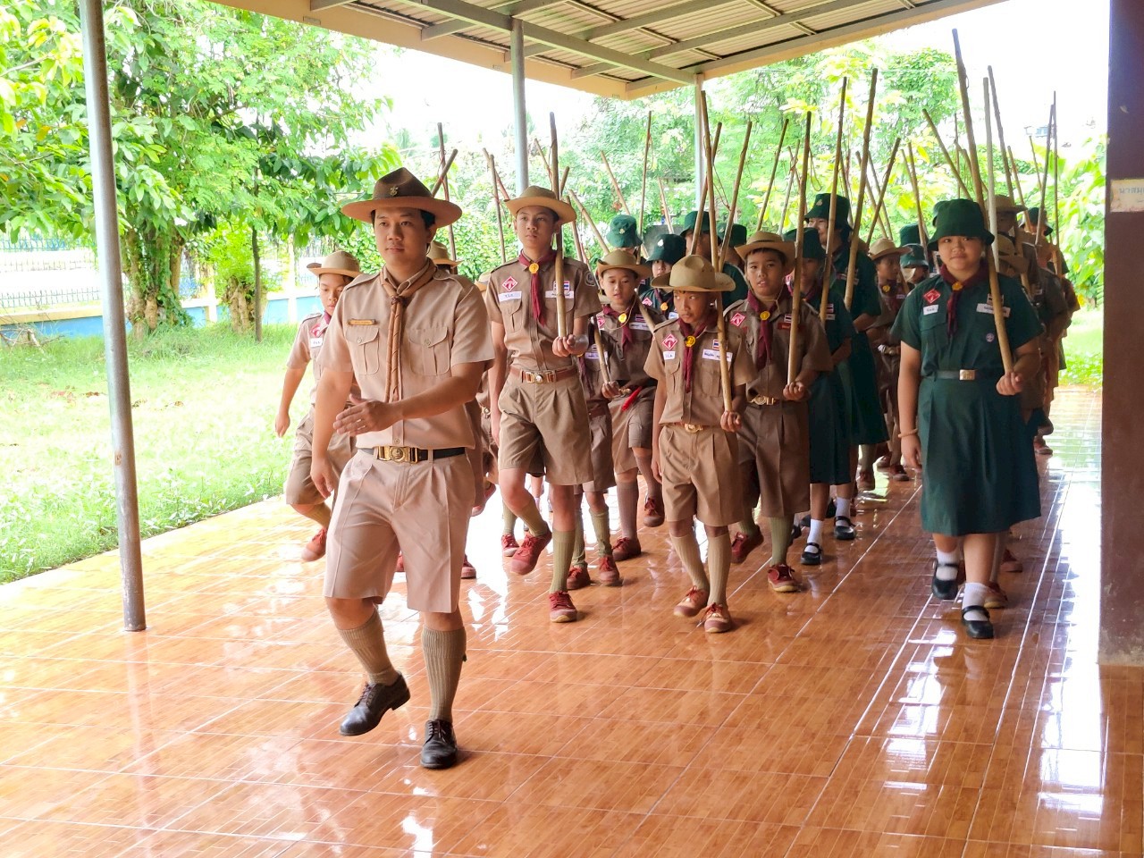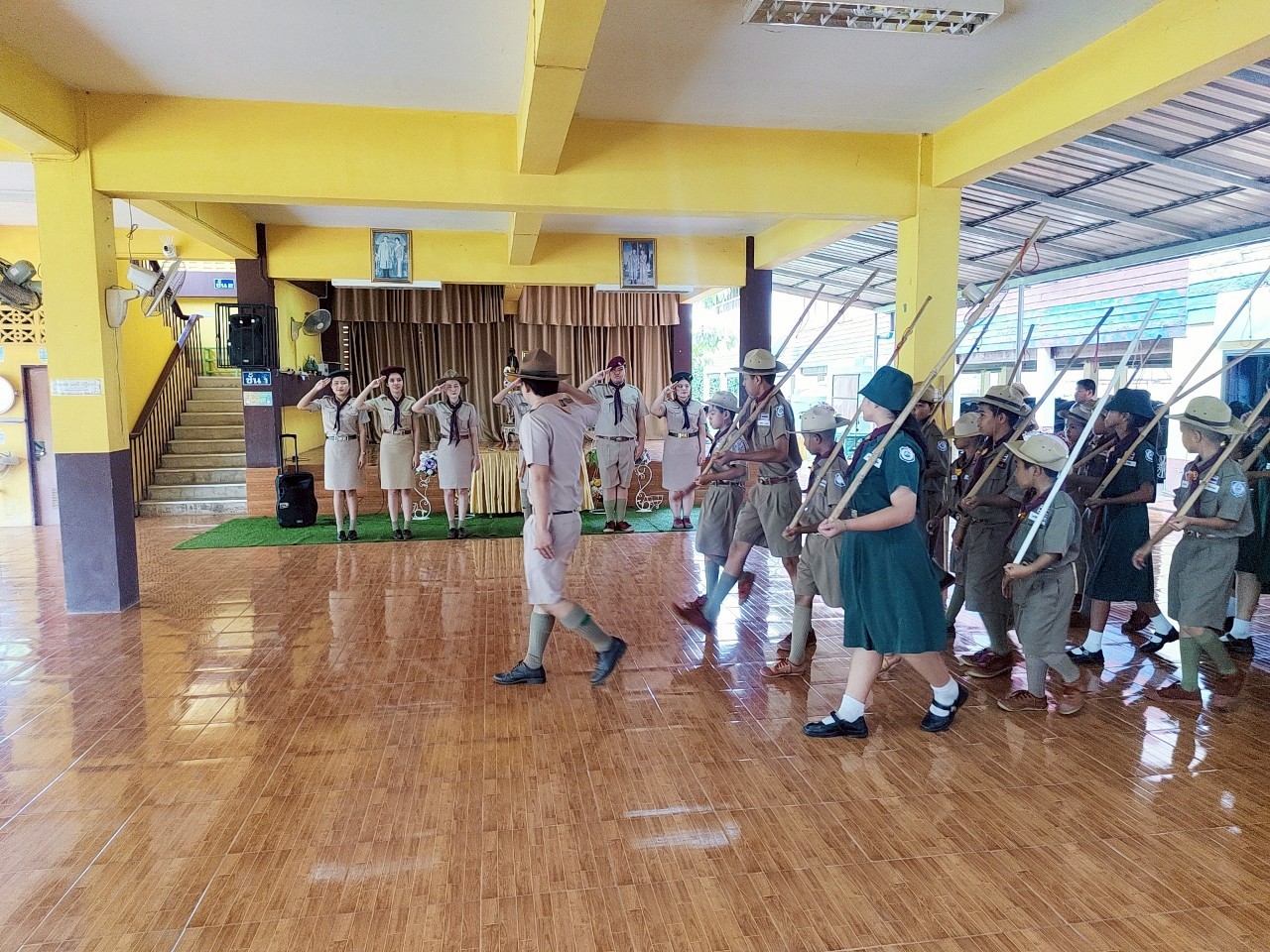 โดยมี นายนพพร จันทะราช ผู้อำนวยการโรงเรียน เป็นผู้อำนวยการกองลูกเสือโรงเรียน รองผู้กำกับ ผู้กำกับลูกเสือและลูกเสือ - เนตรนารีเข้าร่วมในพิธี