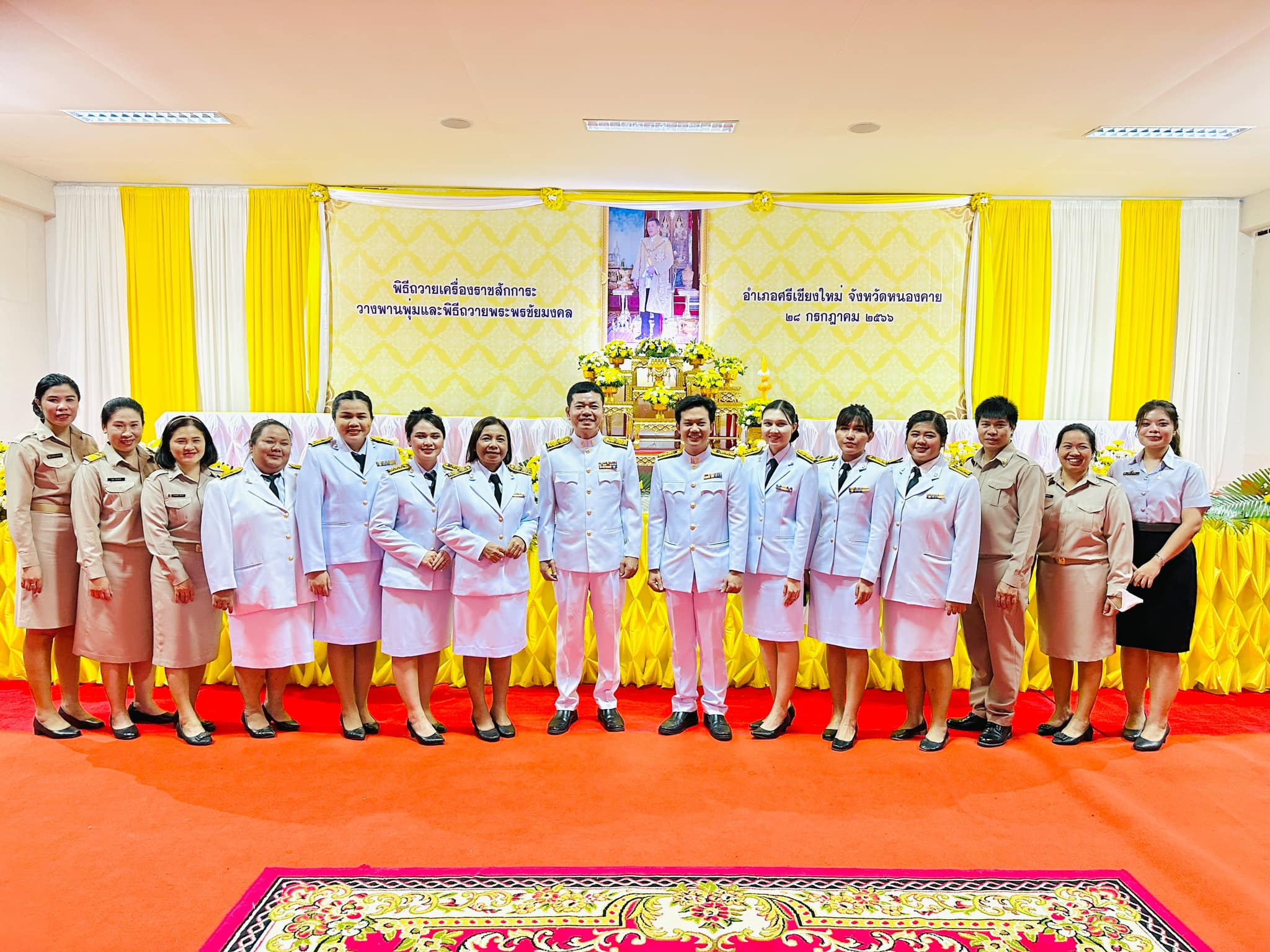 นายนพพร จันทะราช ผู้อำนวยการโรงเรียนชุมชนบ้านหม้อ พร้อมด้วยคณะครูโรงเรียนชุมชนบ้านหม้อ ร่วมพิธีถวายเครื่องราชสักการะและวางพานพุ่ม และพิธีถวายพระพรชัยมงคล พระบาทสมเด็จพระเจ้าอยู่หัว เนื่องในโอกาสวันเฉลิมพระชนมพรรษา  28 กรกฎาคม 2566 ณ ที่ว่าการอำเภอศรีเชียงใหม่