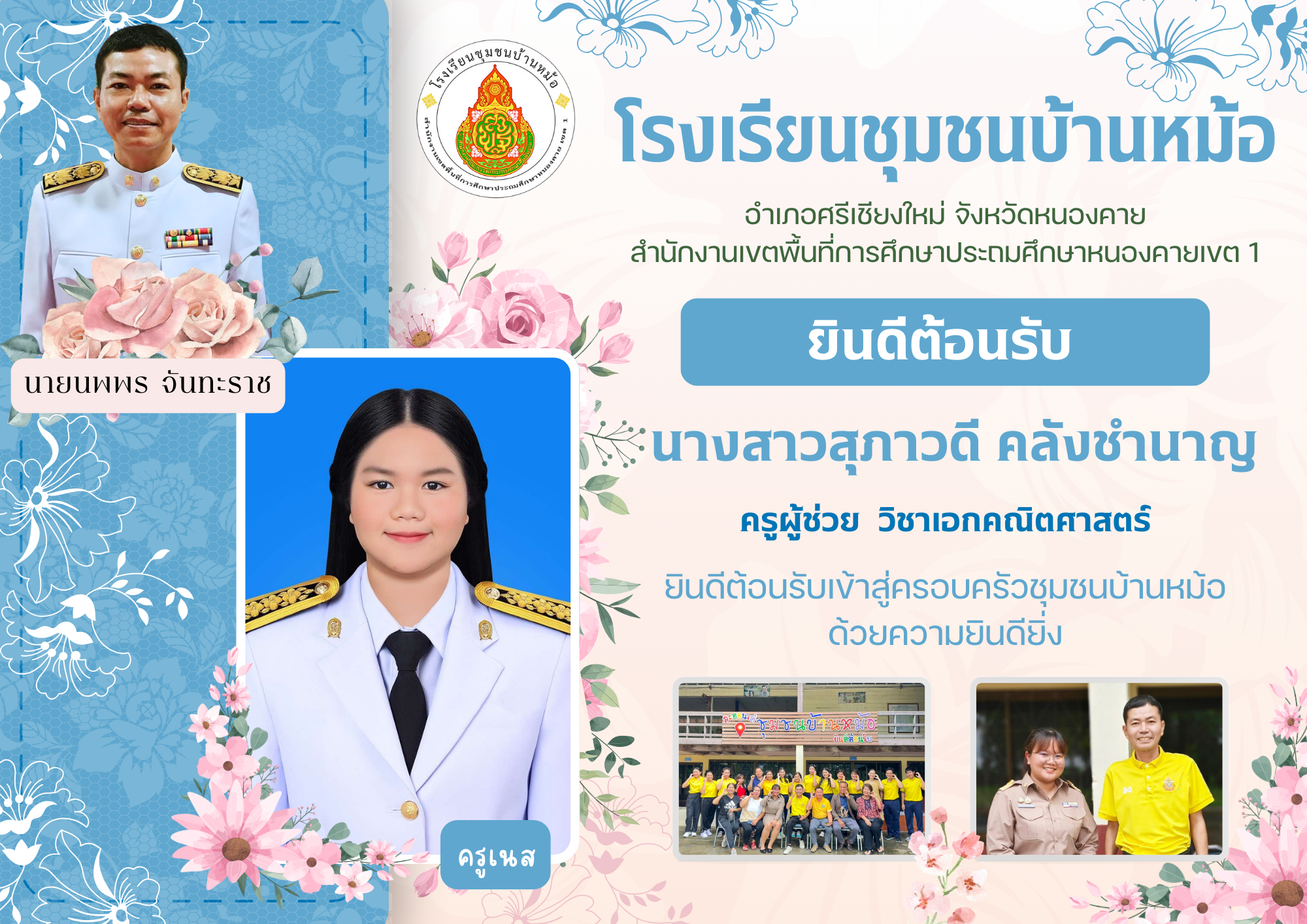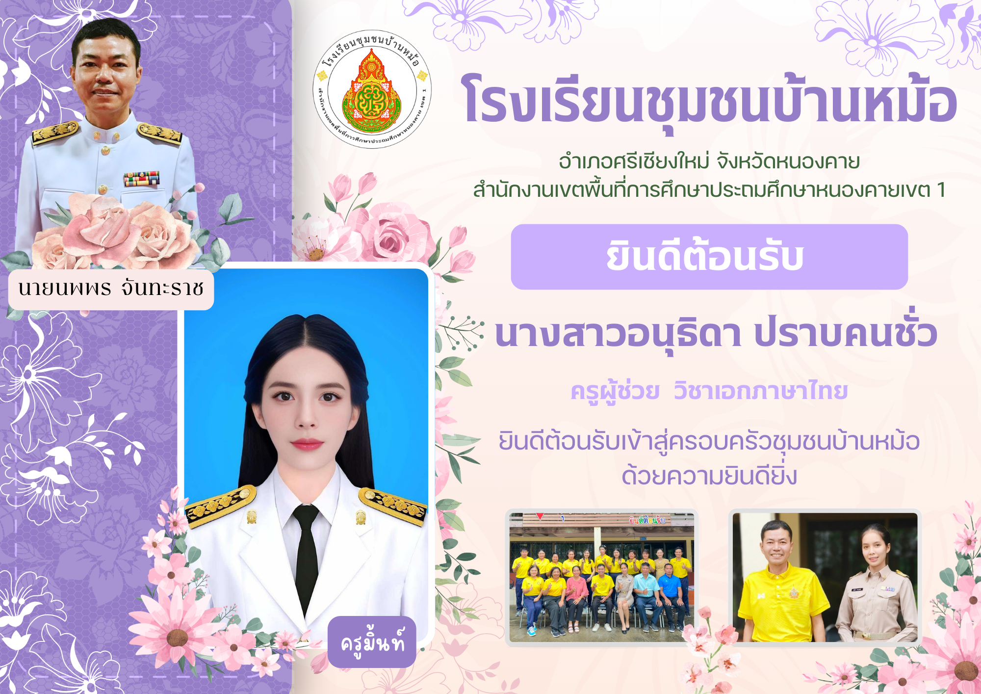 ยินดีต้อนรับคุณครูบรรจุใหม่ที่โรงเรียนชุมชนบ้านหม้อ