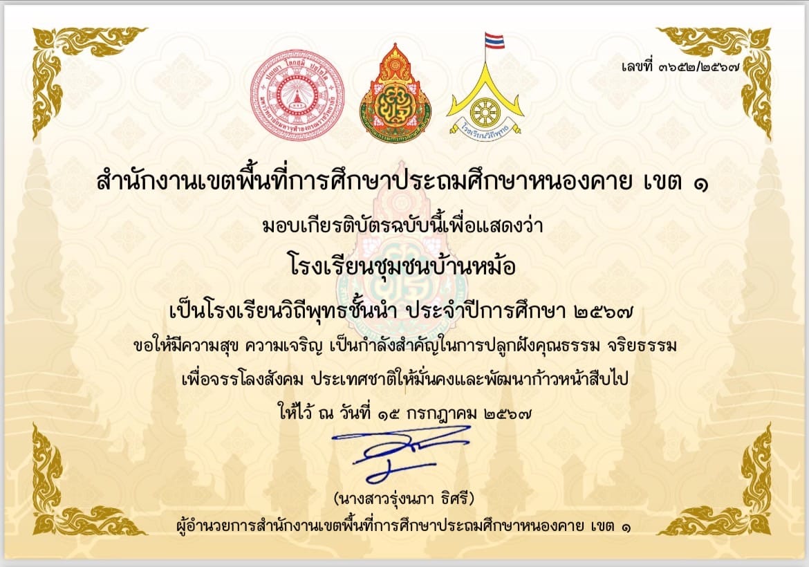 รางวัลโรงเรียนวีถีพุทธชั้นนำ ประจำปีการศึกษา 2567