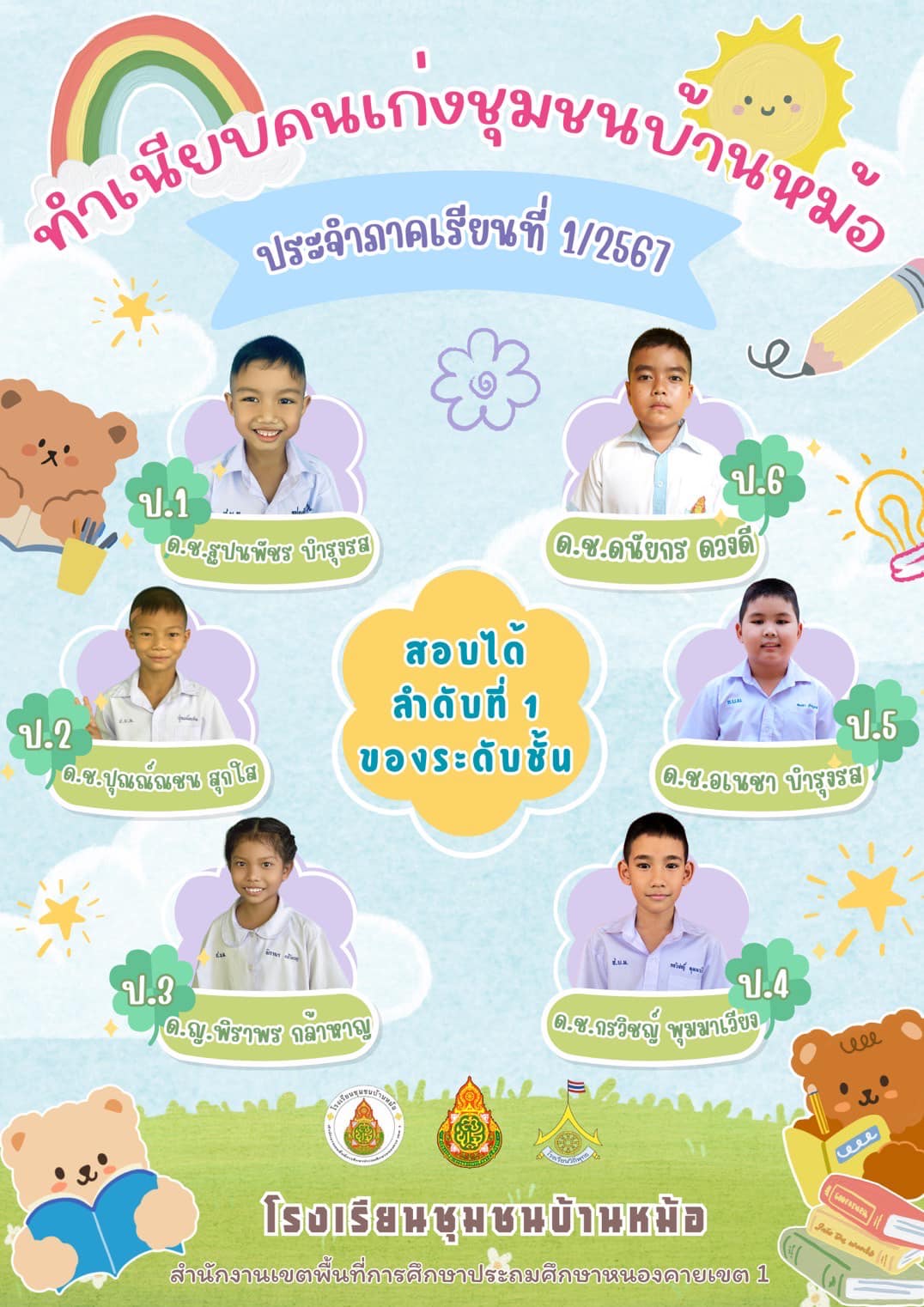 ทำเนียบคนเก่งโรงเรียนชุมชนบ้านหม้อ ประจำภาคเรียนที่ 1/2567