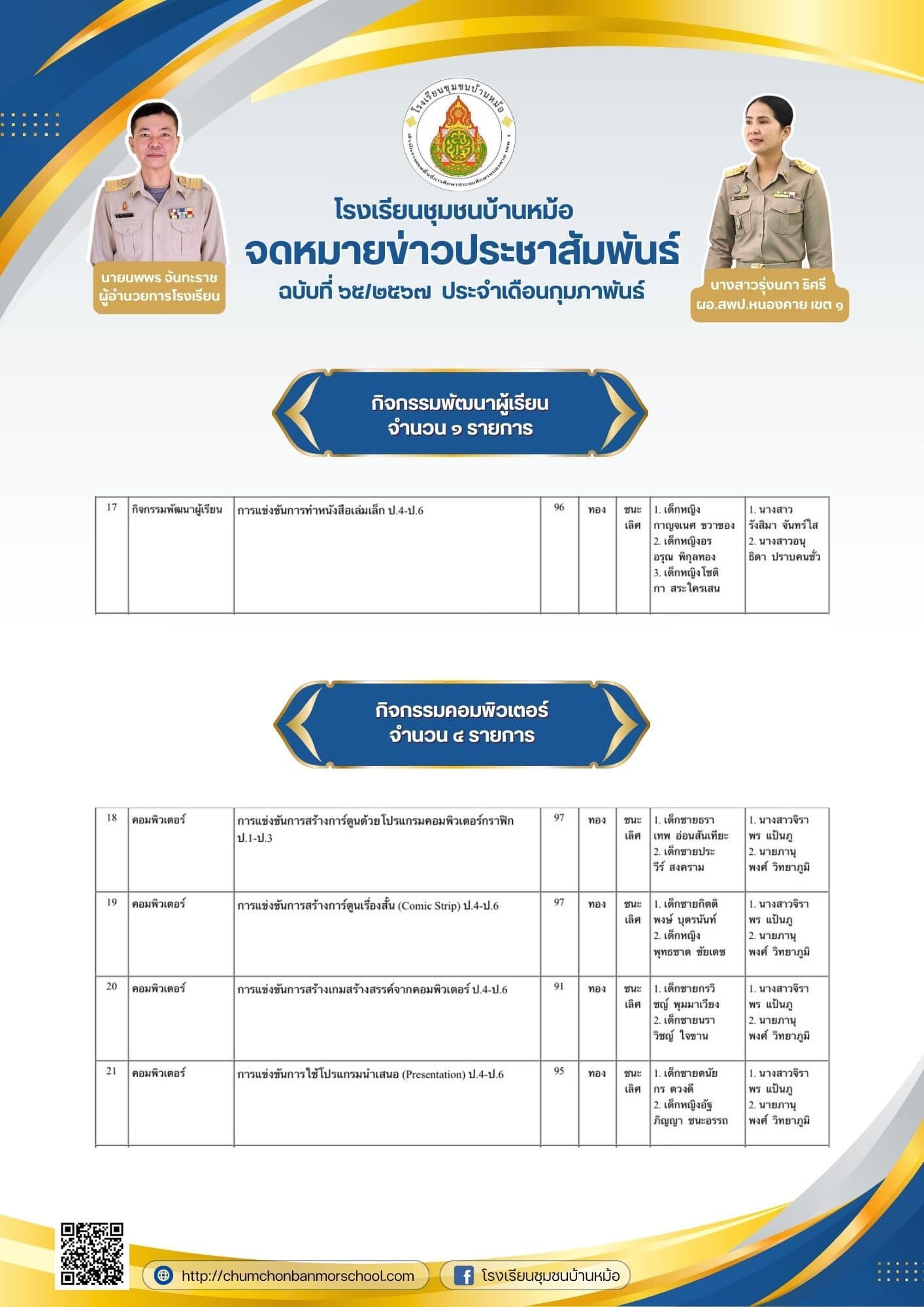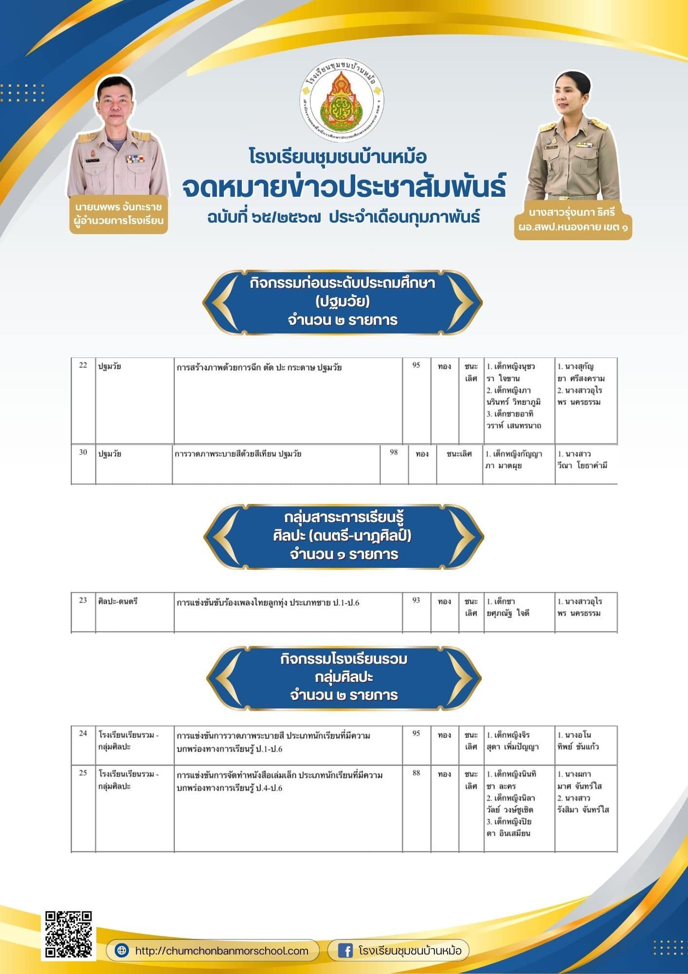 ???? โรงเรียนชุมชนบ้านหม้อ ได้รับรางวัลชนะเลิศอันดับ1 ???? ในการเป็นตัวแทนแข่งขันต่อในระดับเขตพื้นที่การศึกษา ทั้งหมดจำนวน 27 รายการ