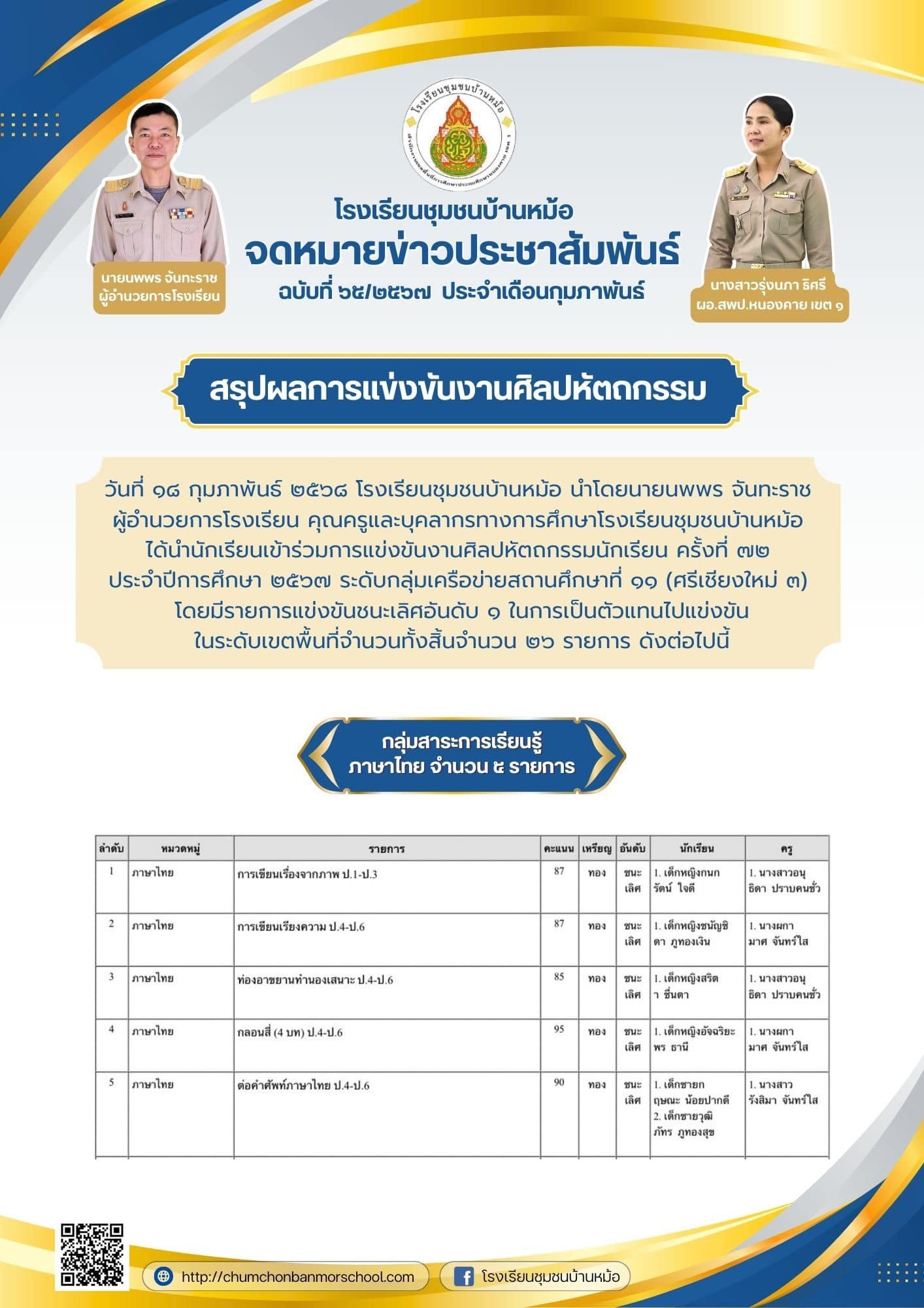 ???? ผลการแข่งขันศิลปหัตถกรรมนักเรียน ครั้งที่ 72