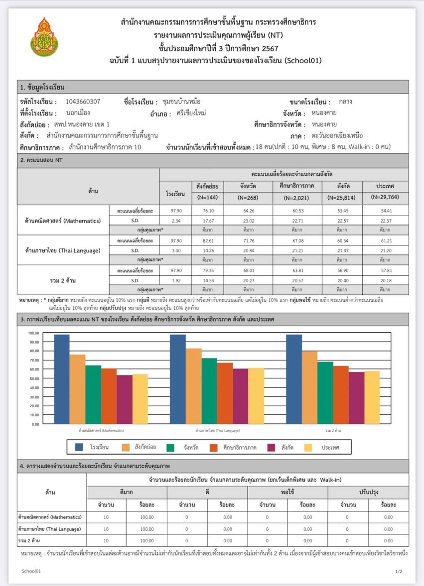 รายงานผลการประเมินคุณภาพผู้เรียน (NT)